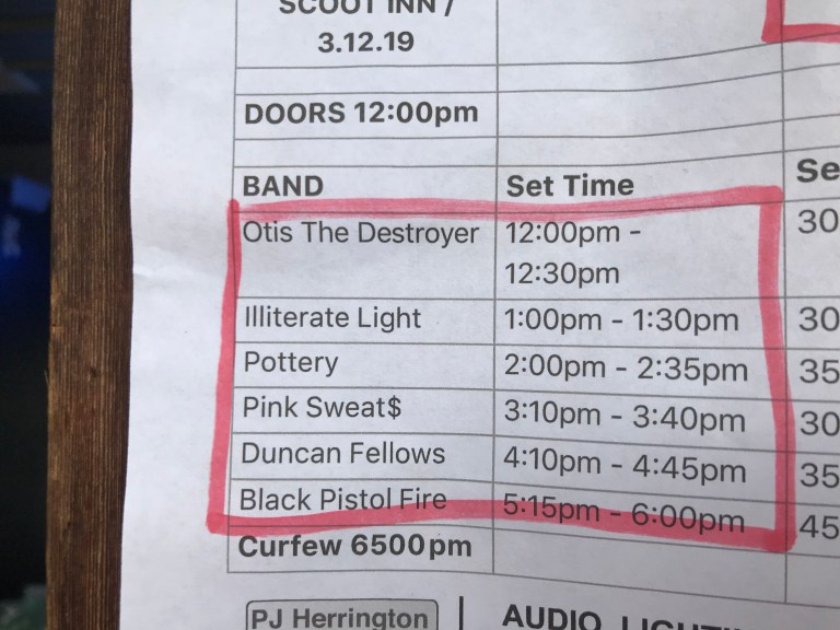 Andee missed out on the breakfast tacos because she went to the office for a few hours. Planning started in earnest on her drive home and though Shiny Ribs at The Cactus Cafe has been a strong contender, we opted for The Scoot Inn and arrived just in time to catch the Otis the Destroyer.